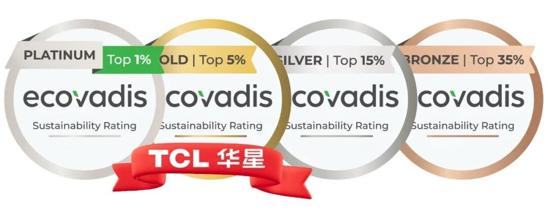 近日,TCL华星在全球知名企业可持续发展评估平台EcoVadis开展的2025年度评级工作中表现突出,斩获EcoVadis金牌评级,综合排名跻身全球参评企业前5%。