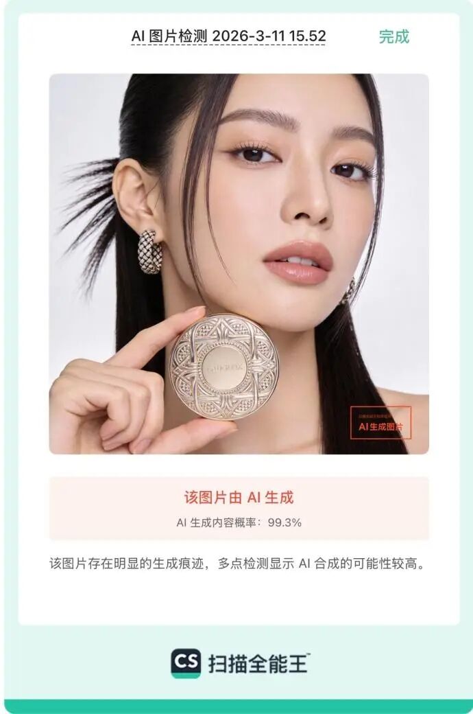 图说:扫描全能王“AI图片检测”功能精准识别AI生成的人物图像