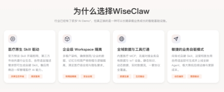 围绕医疗企业的实际需求,WiseClaw具备五大领先特性: