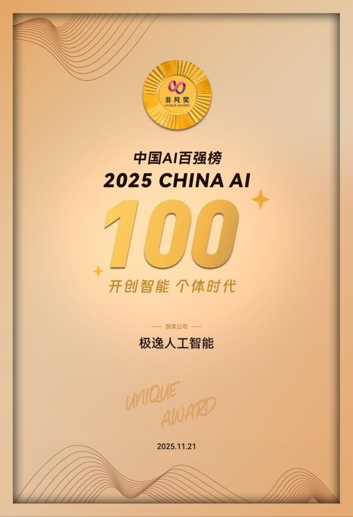 2025年11月21日,杭州极逸人工智能凭借其在AI技术与游戏产业深度融合方面的卓越表现,以及在产品创新力与商业前景上的巨大潜力,成功入选非凡产研2025年度“CHINA AI 100”(中国AI百强榜)。这一荣誉不仅彰显了极逸人工智能作为AI游戏产业佼佼者的实力,也印证了其核心产品——一站式AI游戏创作平台SOON及其全球首款AI游戏数值引擎SOON Fx上所展现出的卓越产品创新力与巨大商业前景。
