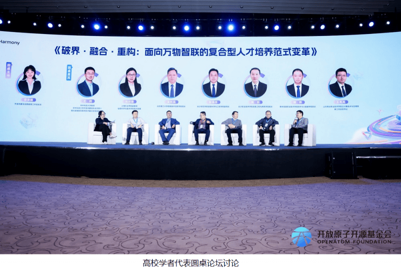 本次分论坛特别设置了以“破界•融合•重构:面向万物智联的复合型人才培养范式变革”为主题的高校圆桌论坛。来自全国多所高校的专家学者围绕现有培养体系面临的现实挑战、“跨界”教学团队的构建路径,以及校企合作从“简单合作”迈向“生态共建”的创新模式展开深入交流,共同探讨开源鸿蒙时代下人才培养的新路径。与会专家一致认为,在万物智联时代,传统“单一技能”培养模式已难以满足产业发展需求。各高校正在积极探索,打破学科壁垒,推动开源鸿蒙与现有课程体系的深度融合。
