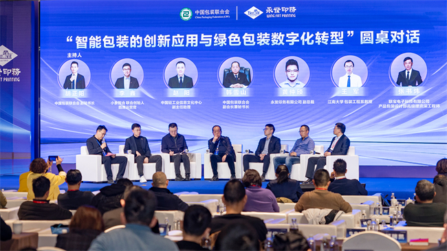 作为活动核心环节,绿色包装科技论坛为包装行业搭建起高层次、专业化对话平台。论坛汇聚中国包装联合会、中国电子信息产业发展研究院等权威机构及创新企业嘉宾,围绕生物基材料应用、包装数字化标准、循环设计路径、人工智能与产业融合等前沿议题深入研讨,为行业绿色智能转型提供了前瞻洞察与可落地的实施路径。在《智能包装的创新应用与绿色包装数字化转型》圆桌对话中,产学研用各方代表从技术研发、产业实践、市场需求等维度,探讨智能包装规模化落地路径,探索绿色包装生态共建机制,为行业高质量转型凝聚共识、汇聚力量。