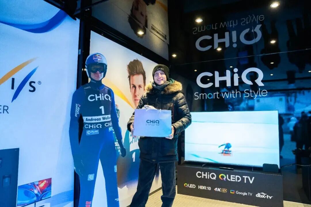 赛事期间,长虹以“Bring It Home”为主题,给观众营造了一个可亲身体验的智慧生活空间。展位陈列的大尺寸Mini QLED电视以其出众的屏幕表现吸引了众多目光,配备全触屏的洗衣机通过直观交互让观众感受智能便捷,而设计简约的意式冰箱则以其出色的保鲜技术与现代美学融入家庭场景。现场更设有代言人Andreas Wellinger的专属互动墙与立牌,凭借其广泛人气,成为观众合影的热门点位,为激烈的赛事增添了轻松与趣味。现场同时开展的有奖互动环节,进一步拉近了品牌与冰雪爱好者的距离,让科技体验充满互动性与欢乐感。