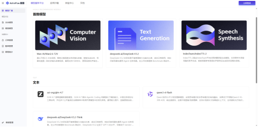 AstraFlow星图全面融合了UModelVerse能力,汇聚200+主流大模型,覆盖文本生成、深度思考、计算机视觉、语音合成、多模态理解等全场景能力。无论是DeepSeek、通义千问,还是其他前沿模型,开发者均可一键调用、即刻体验。