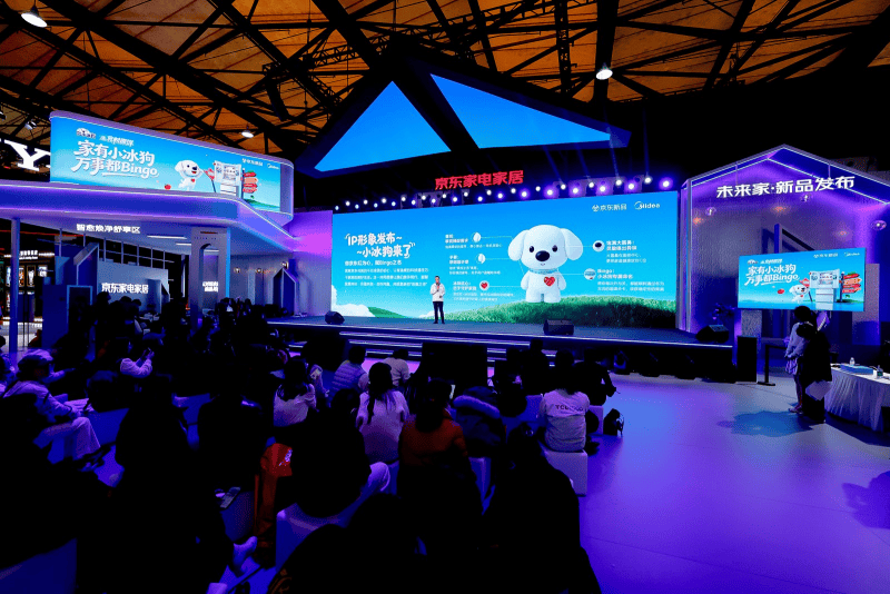 小冰狗冰箱的温柔,还藏在小冰狗 IP 的情感内核里。胸口的京东红冰块红心,不仅是美的与京东合作的印记,更象征着对家庭健康的热情守护;“家有小冰狗,万事都 Bingo” 的美好期许,让每一次开启冰箱,都成为对生活的美好期待。在 AWE 展会现场,柔和的灯光搭配新鲜的果蔬展陈,完美还原了家庭厨房的温馨场景,不少观众驻足体验人感氛围灯的温柔,伸手触摸的瞬间,真切感受到了科技背后的温度与心意。