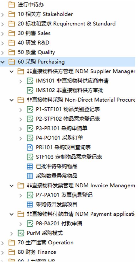 非直接物料采购流程在勤哲Excel服务器中被清晰拆解为采购和付款两大环节,分别对应满足需求部门和供方的核心诉求。采购环节覆盖填写需求、提交采购申请(PR)、生成采购订单(PO)、入库及领用出库五个步骤;付款环节涵盖发票信息录入、付款文件准备以及ERP录入三个步骤。平台通过关键字段自动关联各环节数据,实现流程贯通,避免信息孤岛和重复录入,提高了整体效率和准确性。
