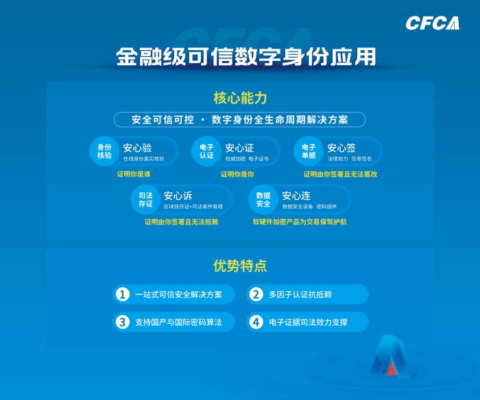 在2025年中国国际服务贸易交易会上,CFCA展示的 “金融级可信数字身份应用” ,正是对这一数字信任难题的有力回应。依托“安心验、安心证、安心签、安心诉、安心连”五大核心平台,CFCA构建起覆盖数字身份全生命周期的管理体系。这套方案不仅能为国内经贸主体提供权威的身份核验与电子签名服务,更重要的是,它将目光投向了全球。